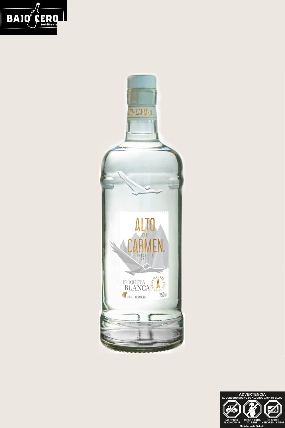 Pisco Alto del Carmen Etiqueta Blanca la vista es un Pisco translucido, cristalino, límpido. Un diamante del los Piscos. Su sabor es moscateles, flores de azar, notas cítricas, frescas y elegantes. En boca es suave, fresco y moscatel con un gran final de boca.