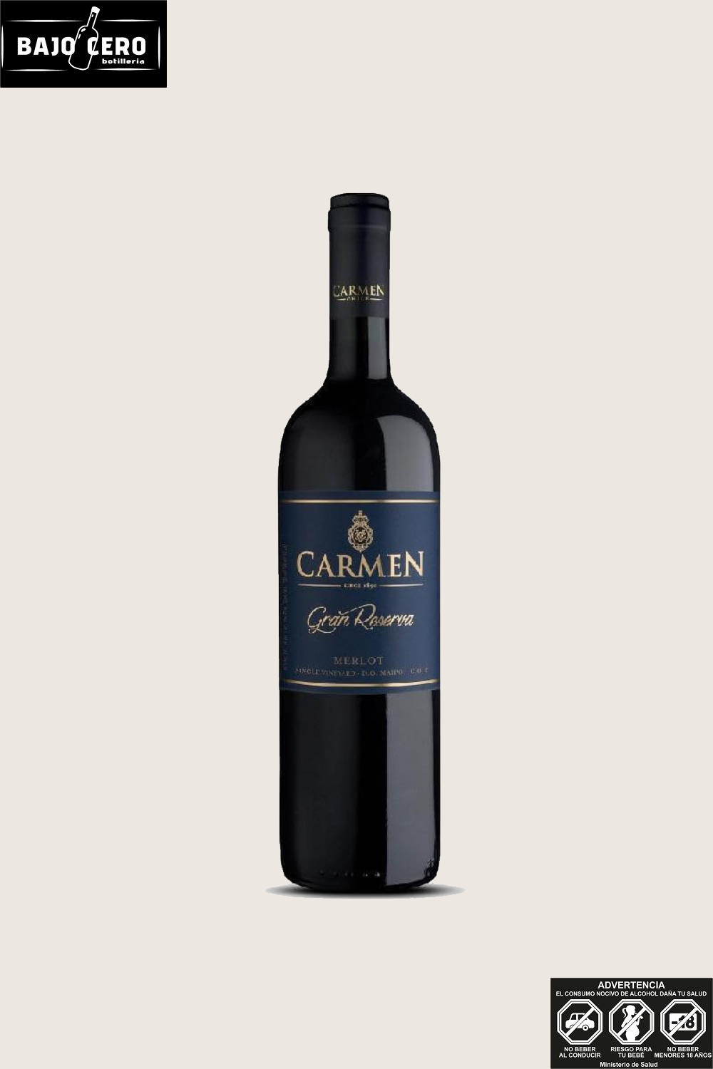 Vino Carmen Gran Reserva Merlot. Este vino tiene un despliegue de diversos aromas a menta, especias, guinda negra, suaves toques a chocolate con notas de tabaco y cuero.