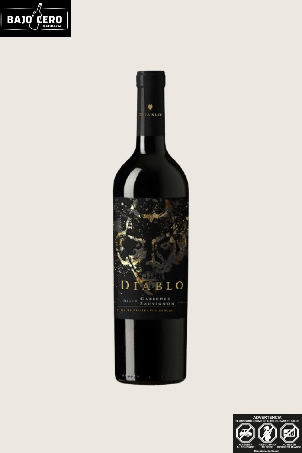 El Vino Diablo Black Cabernet Sauvignon 750ml es un tinto chileno de Viña Concha y Toro, elaborado con uvas Cabernet Sauvignon del Valle del Maule. Con un grado alcohólico de 13,5°, presenta un color rojo profundo y aromas intensos a frutos negros como cassis y cereza negra, con notas de chocolate oscuro, tabaco y vainilla por su crianza en barricas de roble francés y americano. En boca, es estructurado, con taninos suaves y un final sedoso, ideal para carnes rojas, quesos curados o platos especiados. Encuéntralo en Botillería Bajo Cero.