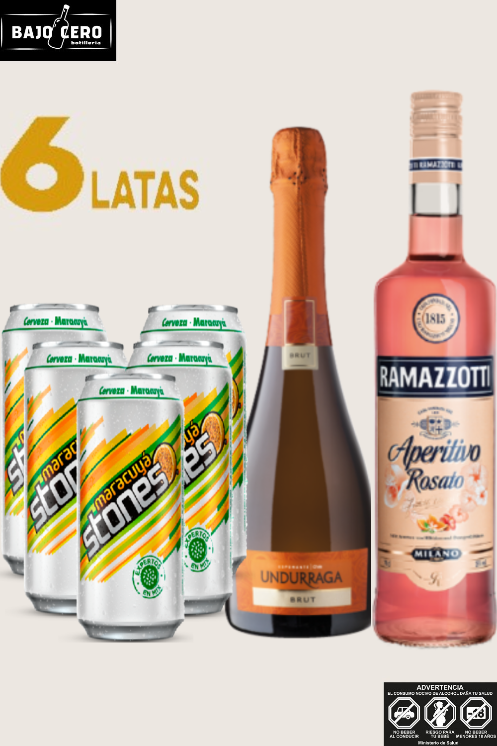 Ramazzotti Rosato + Espumante Undurra + Pack Stone maracuyá