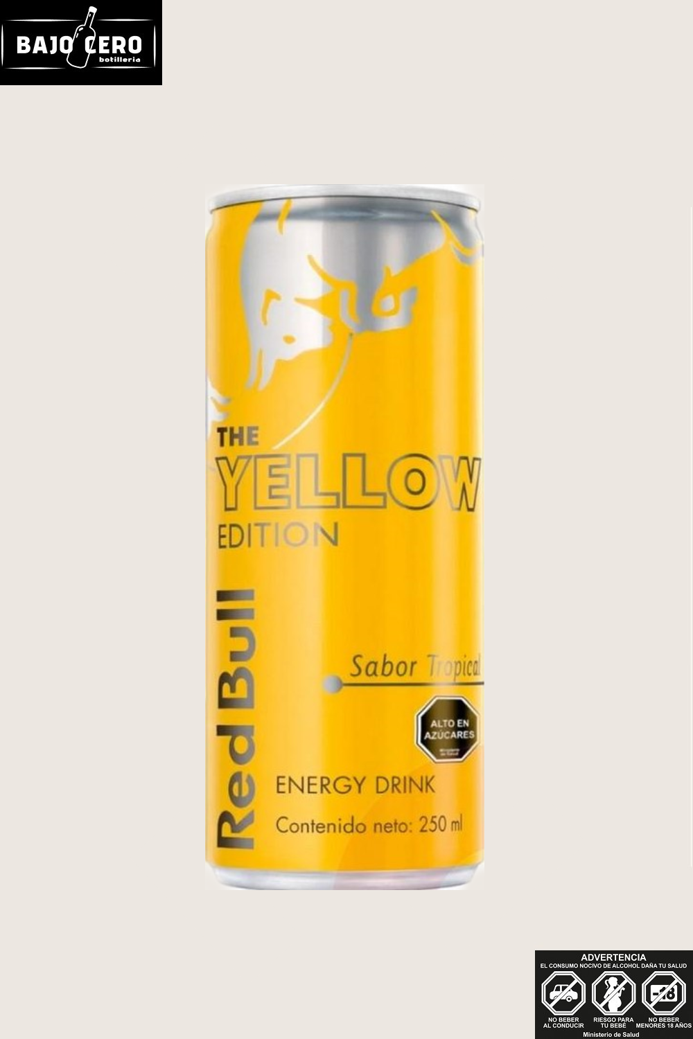 Red Bull Yellow Edition, también conocida como Red Bull Tropical, es una bebida energética que conbina el sabor característicos de red bull con un con un toque de frutas tropicales. Entre sus ingredientes principales se encuentran la cafeína, la taurina y las vitaminas del grupo B, que contribuyen a la reducción del cansancio y la fatiga, además de mejorar la concentración y el estado de alerta. El sabor tropical se logra a través de una mezcla de frutas exóticas, ofreciendo una experiencia refrescante y revitalizante