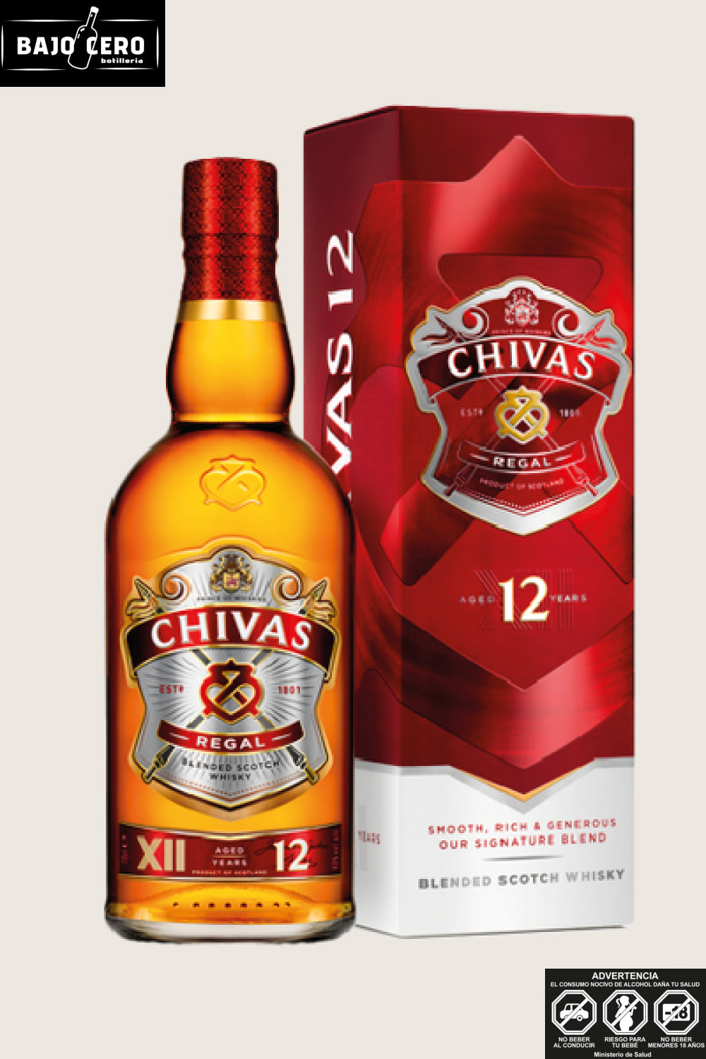 Forjado en la tradición de Speyside, Escocia, Chivas Regal 12 Años es un blended Scotch whisky que encarna la suavidad y el equilibrio, gracias a una cuidadosa selección de maltas y granos envejecidos. Su aroma evoca manzanas maduras, miel y un toque de vainilla, mientras que en boca despliega una textura aterciopelada con sabores de frutos secos, caramelo y un final sutilmente especiado. Encuéntralo en botillería Bajo Cero, y eleva tus momentos con un sorbo puro o un cóctel clásico como el Chivas Highball.